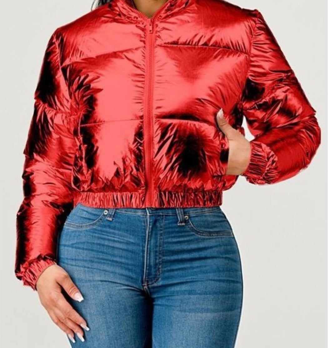 RED METALLIC PUFFER JACKET
